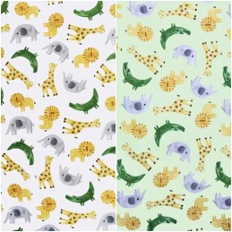 (REMNANT) 100% Cotton Fabric Jungle Animals Cartoon Giraffe Sloth Tiger Approx 44cm x 145cm100% Cotton Fabric