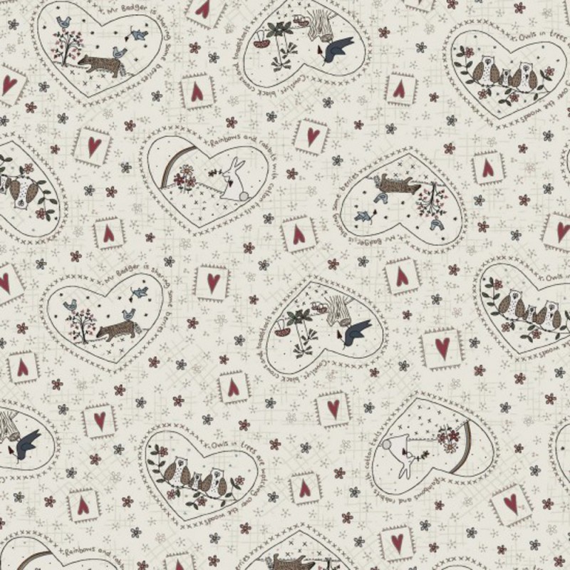 100% Cotton Fabric Nutex Corner Of The Woods Lynette Anderson Woodland Hearts