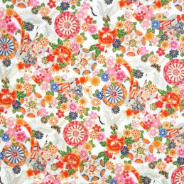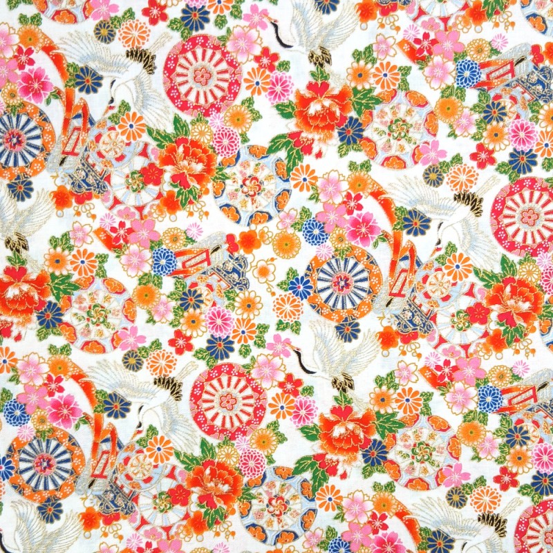 100% Japanese Cotton Fabric | Nutex | Metarikkuna - Cranes Flowers | 110cm Wide