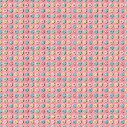 Button Collection is part of the Granny’s Sewing Room collection by Nutex. This cheerful 100% cotton fabric showcases a lively pattern of tiny colourful buttons arranged in neat stacks, available in blue, pink or white colourways. It’s a fun and nostalgic design that adds a touch of personality to any sewing project.