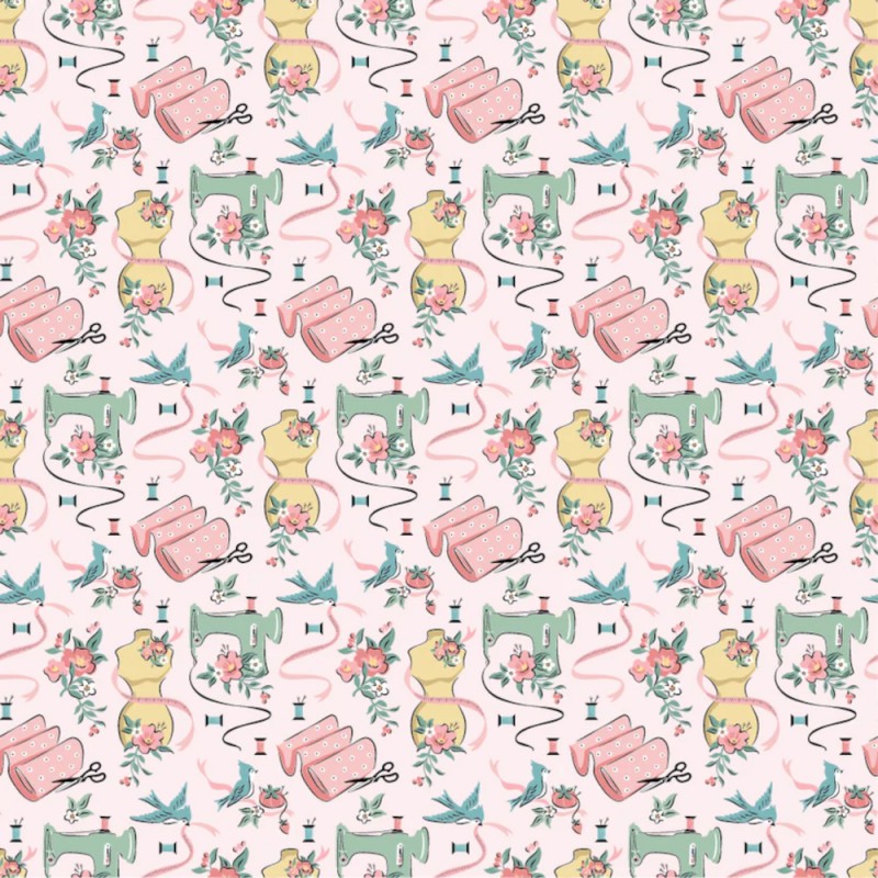 100% Cotton Fabric Nutex Granny’s Sewing Room Sewing Room 112cm Wide