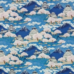 Fuji by Nutex is a beautifully illustrated Japanese scenic print, showcasing mountain landscapes, traditional castles, cherry blossom trees, and soft cloud-filled skies. The design captures the serene beauty of Japan’s countryside and heritage, blending natural and architectural details in a timeless composition.