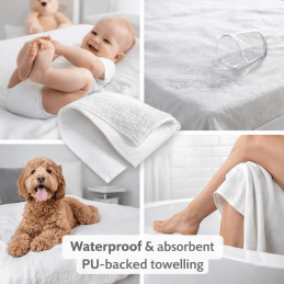 ✔ Waterproof & Absorbent – Cotton towelling absorbs moisture while PU backing prevents leaks