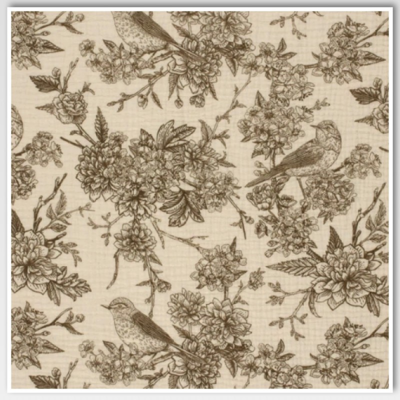 Infuse your makes with vintage romance! This muslin double gauze features a beautifully detailed sketch-style print of songbirds perched among blossoming flowers. Available in soft brown, gentle blue, or classic grey tones, the lightweight, breathable 100% cotton fabric is perfect for floaty blouses, dreamy nursery drapes, and whimsical accessories. The generous 130cm width provides extra flexibility for dressmaking and home décor, while the natural muslin texture is gentle against sensitive skin and a breeze to sew.