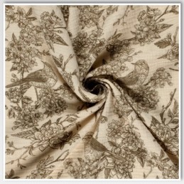 Muslin Double Gauze Fabric – Flora Fauna | Floral Bird Print | 130cm Wide