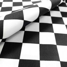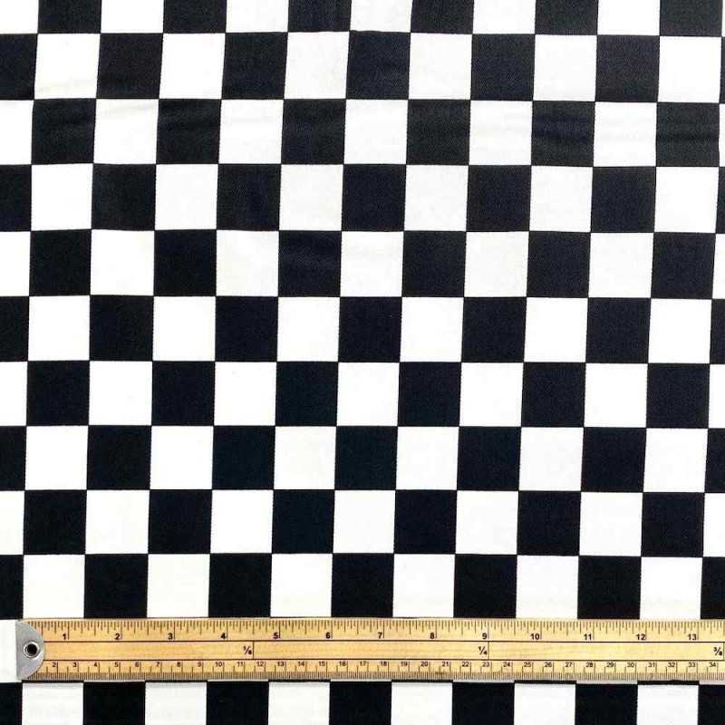 Our Chef's Check Cotton Drill Fabric features a traditional black and white checkered design with 3cm x 3cm squares, perfect for catering aprons, butcher’s aprons, chef uniforms, tablecloths, and various other projects requiring a sturdy, breathable cotton fabric. Made from 100% cotton, this drill fabric offers excellent durability at 208 gsm weight while remaining comfortable and breathable. With a generous width of 58 inches (150 cm) and no stretch, it provides ease of use for many sewing applications. This fabric is Oeko-Tex® Standard 100 certified, ensuring it has been rigorously tested for harmful substances, making it safe and reliable for both professional and home use.