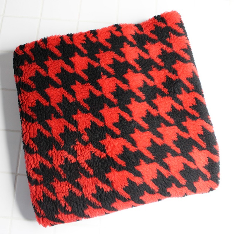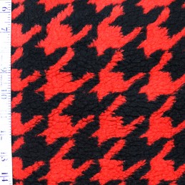 Houndstooth is a large scale duotone pattern characterized by broken checks or abstract four-pointed shapes.