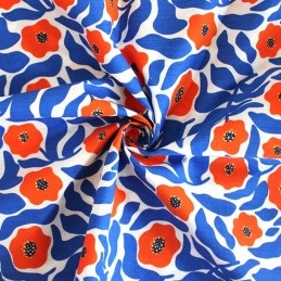 Product Specifications: Product Line: Mindy Polycotton Style Name: Alness Close Daisies Material: 65% Polyester / 35% Cotton Width: Approx. 112cm Weight: Approx. 95gsm Colours Available: Black, Orange, White Fabric Type: Lightweight woven polycotton Texture: Smooth with light structure
