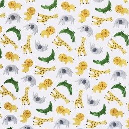 Add a playful and imaginative touch to your next make with Animals, a vibrant and contemporary design from the MP Digital Polycotton collection. Featuring a fun, abstract print of giraffes, lions, crocodiles, and elephants, this fabric is available with either a white or green background.