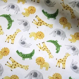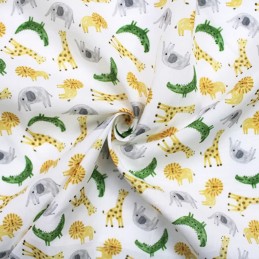 MP Digital Polycotton Fabric | Animals - Lion Giraffe Crocodile Elephant | 112cm Wide