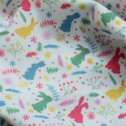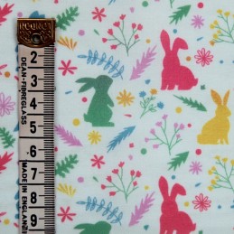 MP Digital Polycotton Fabric | Bunnies Multicolour Rabbits Floral | 112cm Wide