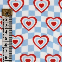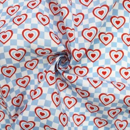 MP Digital Polycotton Fabric | Check Hearts Valentine's Day Love | 112cm Wide