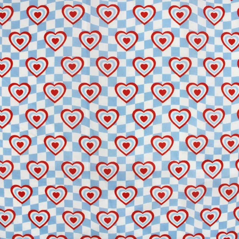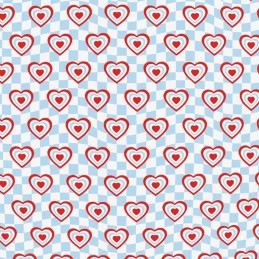 Add a dose of cheer to your next creative project with Check Hearts, part of the MP Digital Polycotton collection. This delightful design features red, white, and blue hearts scattered across a wavy blue and white check background. With its fresh colour palette and playful layout, it's perfect for a wide range of sewing and craft ideas.