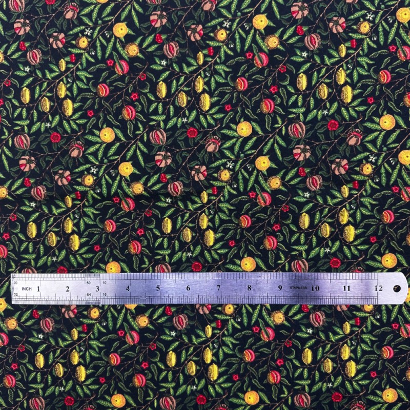 The Pomegranate fabric from the Crafty Polycotton Digital Printed range features William Morris’s timeless pomegranate motif in a detailed digital print. The design highlights stylised pomegranates, leaves, and curling vines, beautifully rendered in vibrant colours on a smooth polycotton base, perfect for quilting, home décor, accessories, and sewing projects.