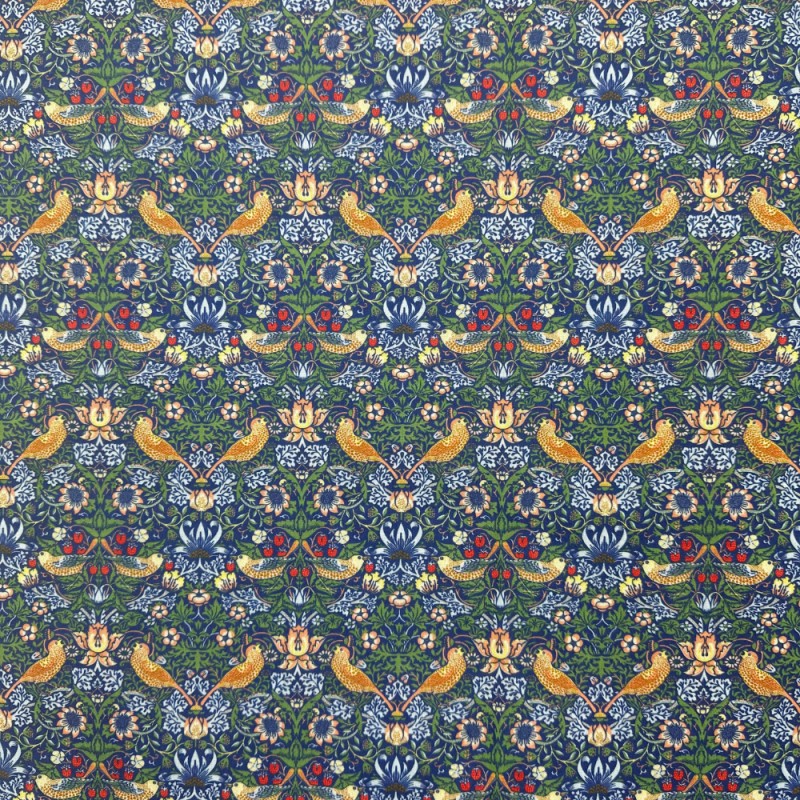The Strawberry Thief fabric from the Crafty Polycotton Digital Printed range showcases William Morris’s iconic design in a beautifully detailed digital print. This timeless pattern of birds and foliage is brought to life on a soft and versatile polycotton base, offering both durability and a smooth handle.