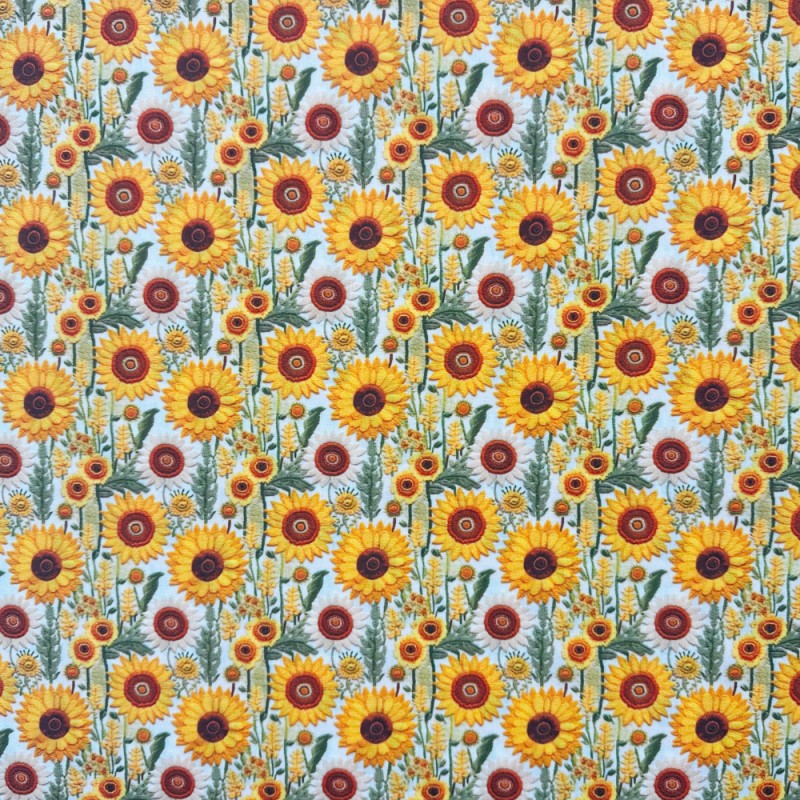 3D Sunflowers | Polycotton Digital Printed | Crafty | 80% Polyester, 20% Cotton | 110GSM | 115cm Wide