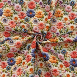 The 3D Multi Flowers fabric from the Crafty Polycotton Digital Printed range displays a colourful array of realistic 3D-style flowers, combining multiple shapes and shades for a vivid, dynamic floral pattern. Perfect for adding a cheerful and lively touch to spring and summer projects, this fabric works beautifully in home décor, crafts, and sewing projects.