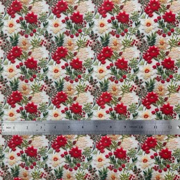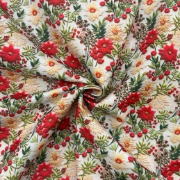 3D Christmas Flowers | Polycotton Digital Printed | Crafty | 80% Polyester, 20% Cotton | 110GSM | 115cm Wide