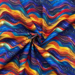 The Groovy Waves fabric from the Crafty Polycotton Digital Printed range showcases vibrant multicoloured waves in a dynamic, flowing pattern. The cheerful and energetic design adds a playful and contemporary touch to any project, making it perfect for quilting, crafts, home décor, and accessories.