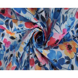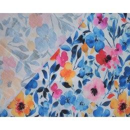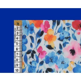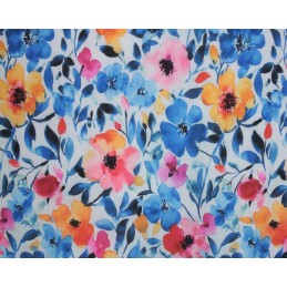 Bring your creations to life with the stunning Blossoms polycotton fabric from E Studio. Featuring a lively mix of bold blue florals accented with pink, orange, and soft pastel tones, this design has a delicate watercolour effect that adds depth and elegance to any project.