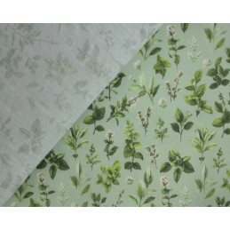 Create fresh, nature-inspired designs with the elegant Botanical Leaves polycotton fabric from E Studio. Featuring a beautifully arranged selection of delicate green foliage and small floral accents, this print brings a calming, organic feel to any project. Set against a soft green background, the design has a refined, timeless look.