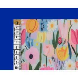 Make a bold statement with the vibrant Cubist Tulips fabric from E Studio. Featuring a playful mix of stylised tulips and floral elements arranged in a modern cubist-inspired layout, this design combines bright colours and abstract shapes for a fun, contemporary look.
