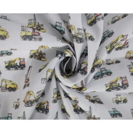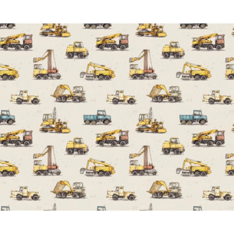 Get building with the playful Trucks fabric from E Studio. Featuring a detailed assortment of construction vehicles including diggers, cranes, and trucks, this design has a charming illustrated style that’s perfect for themed projects and children’s makes.
