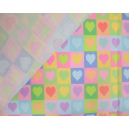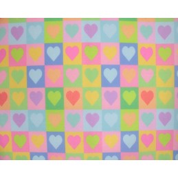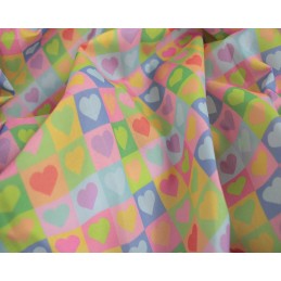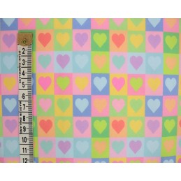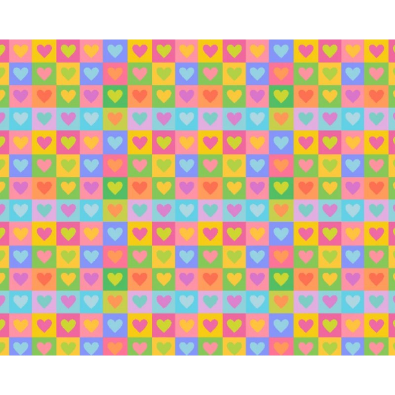 Add a burst of colour to your creations with the fun and vibrant Candy Hearts fabric from Little Johnny. Featuring a grid of rainbow-coloured hearts on bold, contrasting backgrounds, this playful design is full of energy and charm.