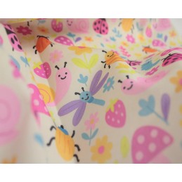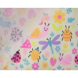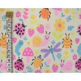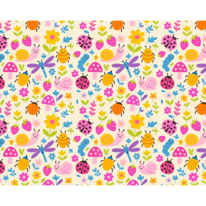 Bring a fun and friendly garden scene to your sewing projects with the adorable Bug Buddies Garden fabric from Little Johnny. Featuring a mix of cheerful insects including ladybirds, bees, butterflies, and snails, alongside colourful flowers and plants, this design is full of playful charm.