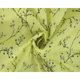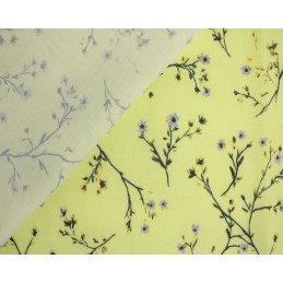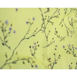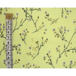 Delicate and beautifully understated, Buttercup Branch from Mindy features a soft trailing design of fine branches adorned with tiny blossoms set against a gentle yellow background. The subtle floral detailing gives this fabric a light, airy feel, perfect for creating elegant and timeless pieces.