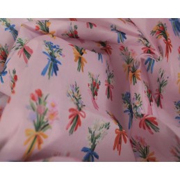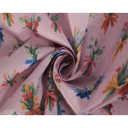 Available in soft pink for a warm, feminine feel or crisp white for a clean, classic background, this fabric is perfect for adding a pop of colour to your sewing projects. The spaced bouquet layout makes it ideal for showcasing individual motifs in your designs.