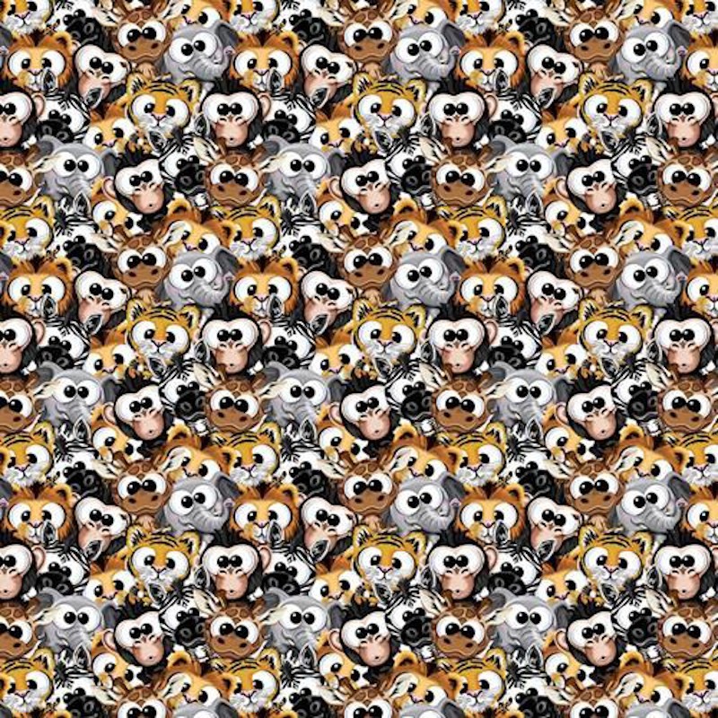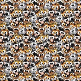 100% Cotton Digital Fabric Plush Big Eyed Safari Animals