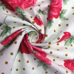 100% Cotton Poplin Fabric Passion Floral Bunched Retro Flowers