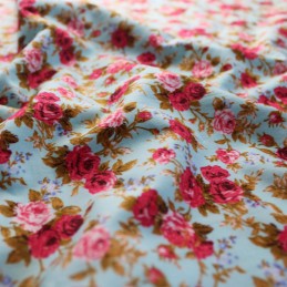 100% Cotton Poplin Fabric Rose & Hubble Flower Floral Barlings Close 112cm Wide
