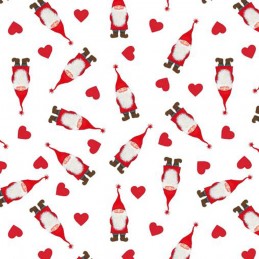 100% Cotton Fabric Lewis & Irene Christmas Tomtens Gnomes Gonks Xmas Hearts