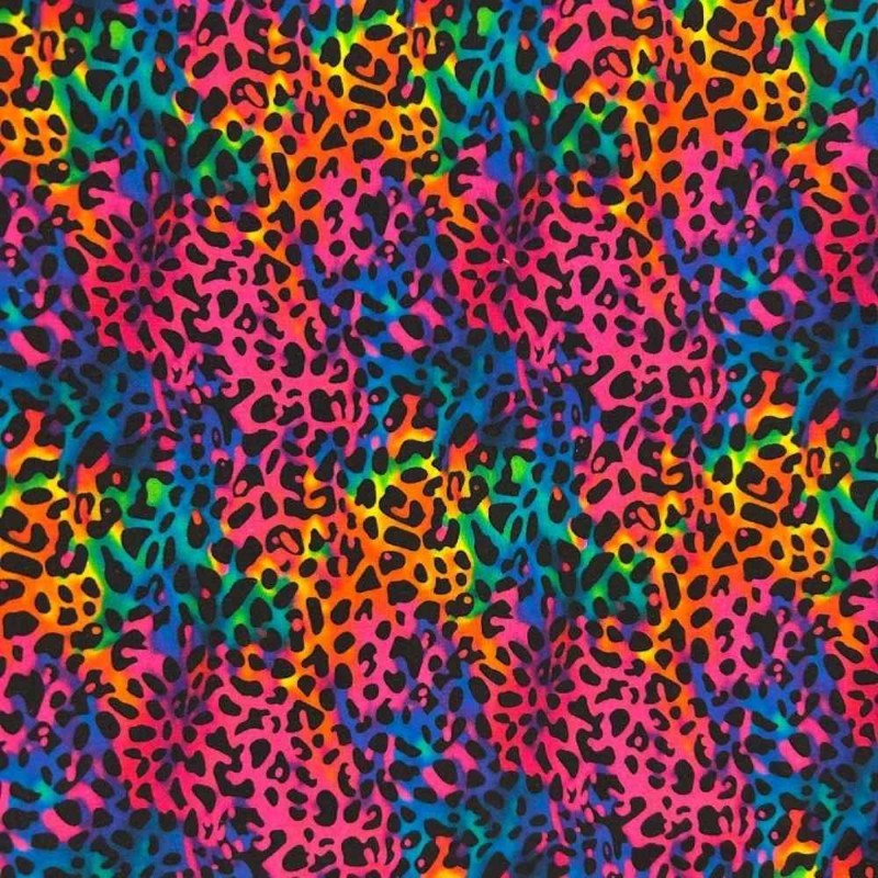 Premium 100% cotton fabric with vibrant neon leopard digital print