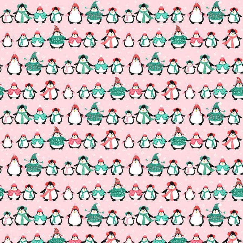 Bring some cosy charm to your festive makes with Born To Chill, a whimsical winter design from the Sleigh It Ain’t Snow collection by Dear Stella. This print features a cast of adorable penguins bundled up in colourful jumpers, hats and scarves, all surrounded by falling snowflakes, set against a soft pink background.