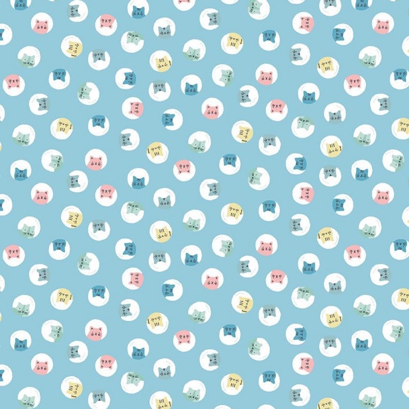 The Dear Stella You’re Purrfect fabric is an adorable 100% cotton digital print featuring pastel-coloured cat faces in circles scattered across a sky-blue background. Each kitty shows a different cute expression, making this a fun, whimsical print that cat lovers will adore.