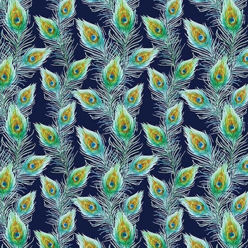(REMNANT) 100% Cotton Digital Fabric Peacock Feathers Bird Crafty 100% Cotton Digital Fabric Peacock Feathers Bird Crafty