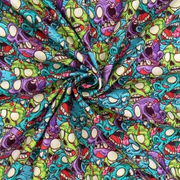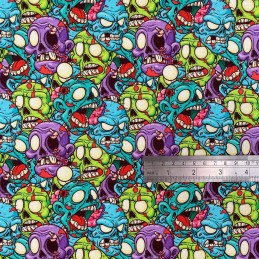 (REMNANT) 100% Cotton Digital Fabric Living Dead Zombie Halloween APPROX 62CM X 140CM