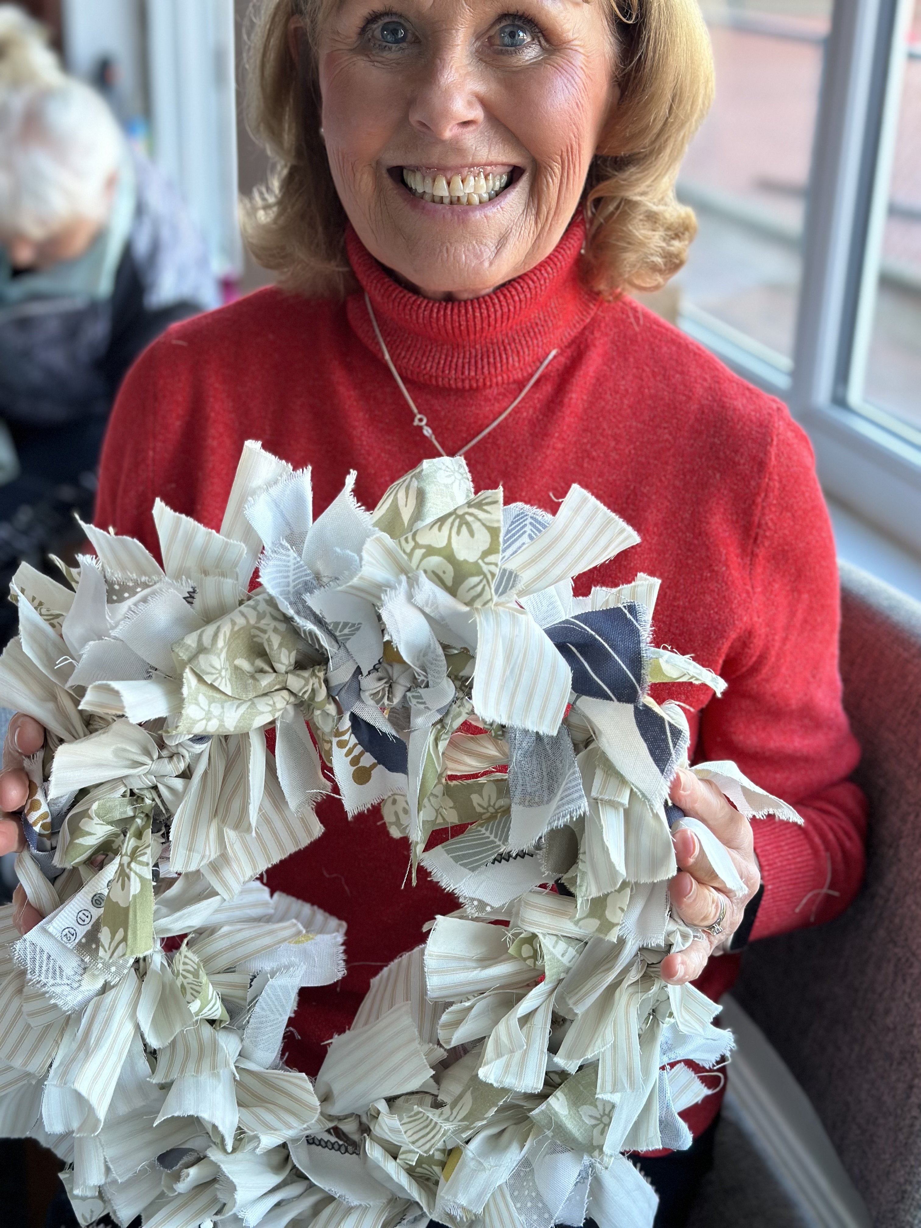 I’m delighted with the remnants I received from Oh sew crafty. I’ve recently started running textiles workshops in Leicestershire and the Raggy Wreaths turned out beautifully,