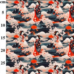 Summary: Rose & Hubble Japanese Geisha print cotton poplin fabric 100% cotton, medium-weight 130gsm 112cm wide fabric for diverse applications Oeko-Tex Standard 100 certified Machine washable and tumble dry safe