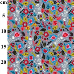 100% Cotton Poplin Fabric Rose & Hubble Halloween Skeletons Floral Flower Bones