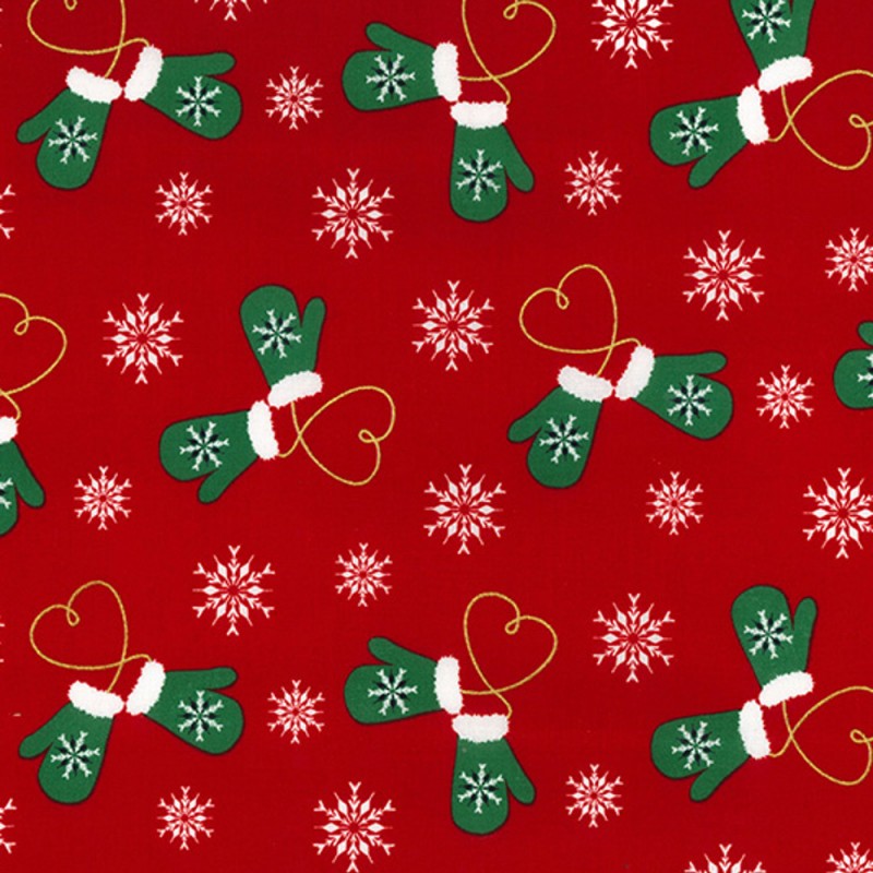 100% Cotton Fabric Rose & Hubble Christmas Mittens Hearts Snowflakes 135cm Wide