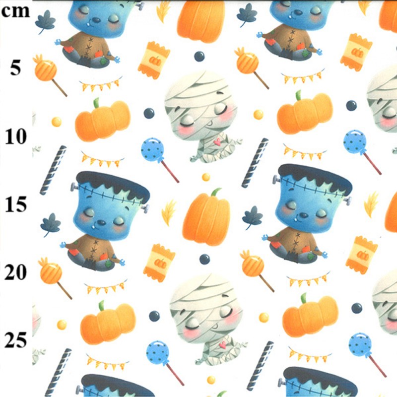 100% Cotton Digital Fabric Rose & Hubble Halloween Chibi Monster & Mummy Treats