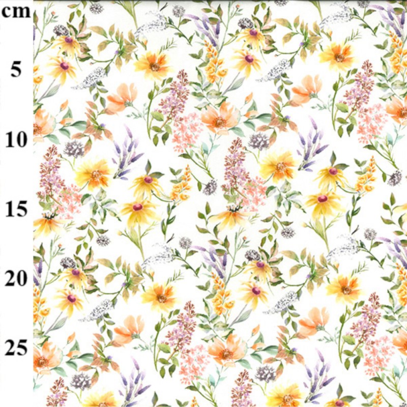 100% Cotton Poplin Fabric Rose & HubbleSandy's Garden Floral Flowers Daisy Approximately 130gsmG