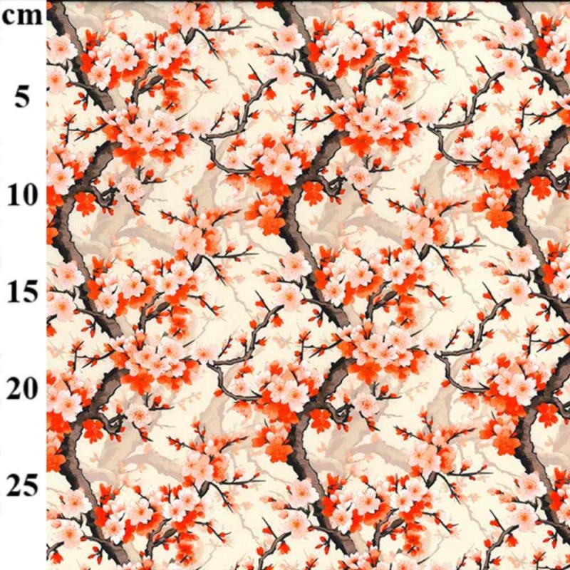 Discover the timeless beauty of this Rose & Hubble Cherry Blossom Cotton Poplin Fabric. Featuring delicate red and cream cherry blossoms on a soft cream background, this 100% cotton fabric weighs 130gsm and has a smooth, comfortable handle with excellent drape. Measuring 112cm (45 inches) wide and certified by Oeko-Tex Standard 100 for safety and quality, it’s perfect for quilting, crafting, and garment making. Machine washable at 40°C with medium tumble dry for easy care.