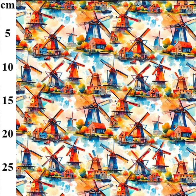 Dutch Watercolour Windmills 100% Cotton Poplin Fabric - Rose & Hubble