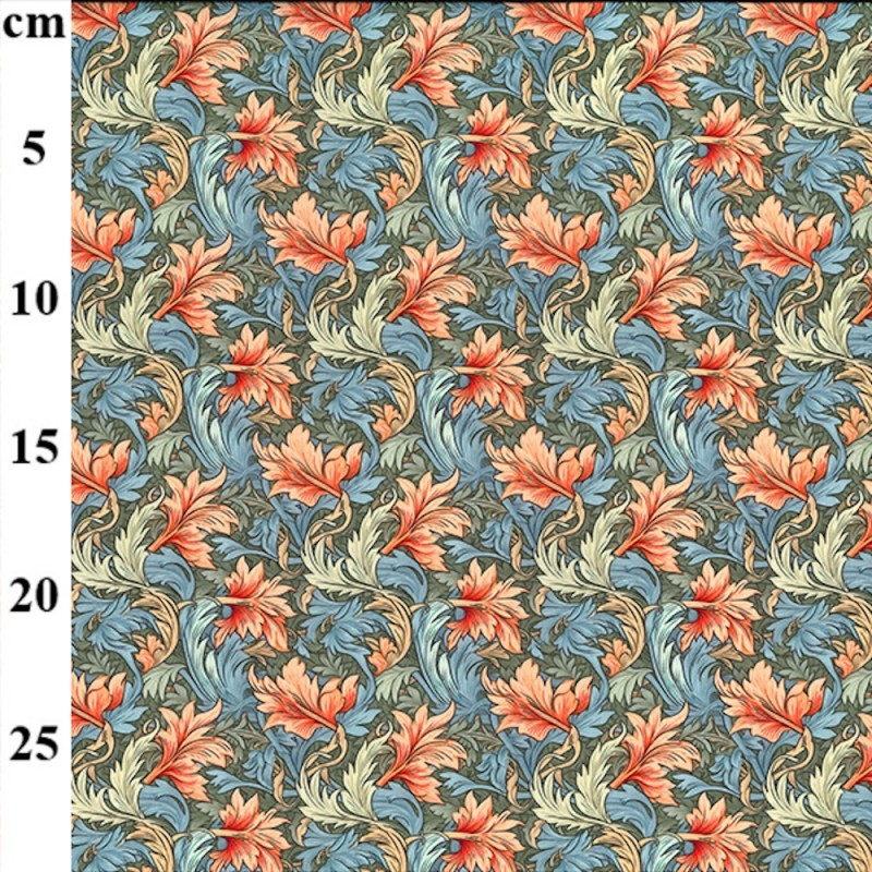 Premium 100% cotton fabric with William Morris-inspired floral and leaf swirl design