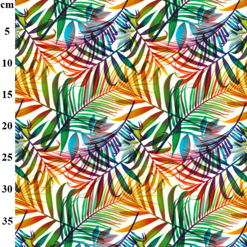 • Colourful tropical leaf print on white